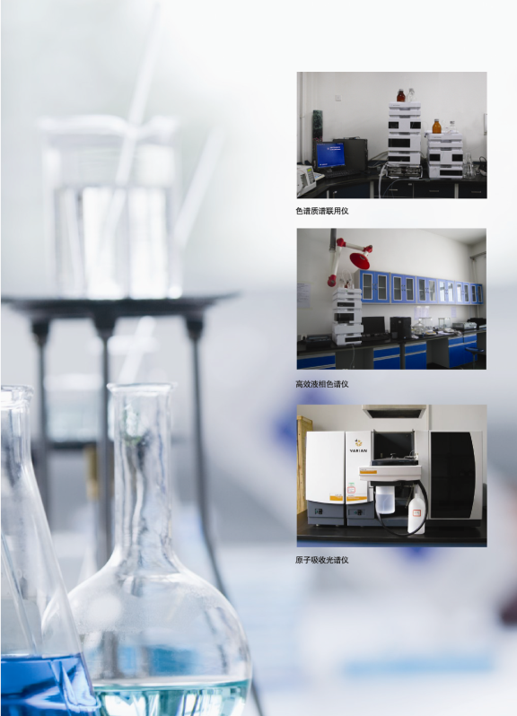 研發(fā)及質(zhì)檢中心配備了300多平方米的實驗室,100多萬元的先進(jìn)儀器和設(shè)備如:******液相色譜儀、氣相色譜儀、薄層掃描儀、TU1901紫外分光光度計、微量水分測定儀、旋光儀、薄膜旋轉(zhuǎn)蒸發(fā)器、超純水器等。